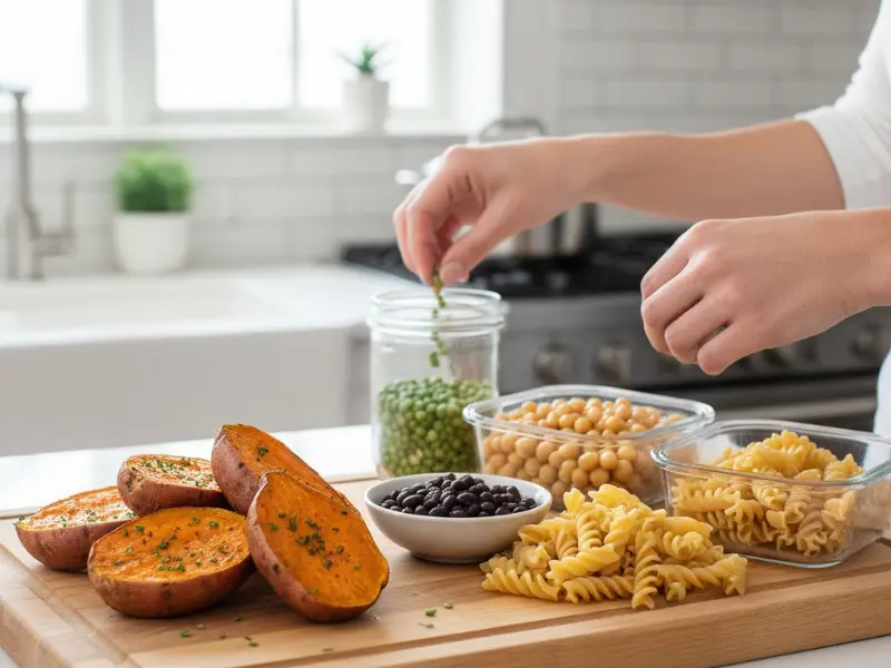 - Vegetales variados para volumen y saciedad sin pesadez nocturna.