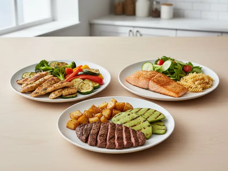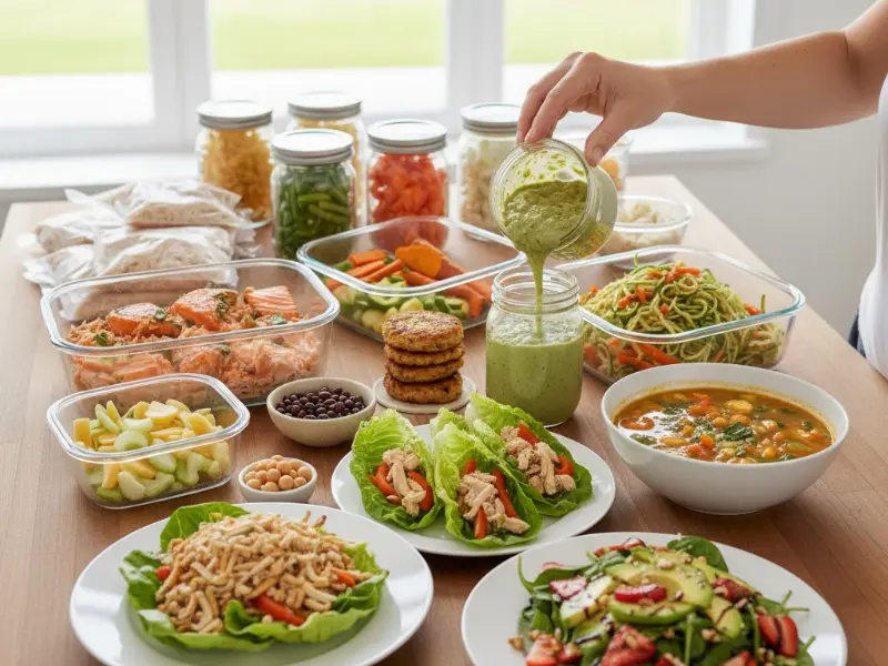 Si la proteína ya está cocida y sazonada suave, armar cenas toma minutos. Preparar por tandas te da variedad sin empezar desde cero cada noche.