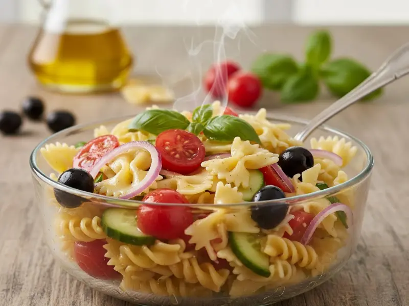 6 Señales de que un hombre tiene miedo a perderte- Combina pasta con tomate, cebolla morada, aceituna, albahaca y pepino.