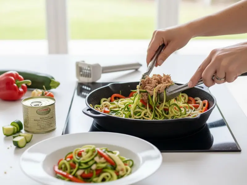Adelantar la tabla de cortar reduce fricción. Con verduras listas, cualquier sartén se convierte en cena completa.
