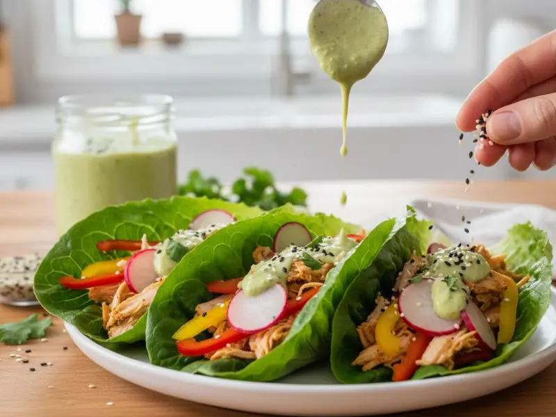 - Wraps de lechuga con pollo, pimientos y sésamo