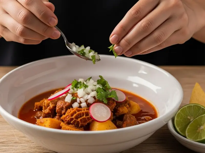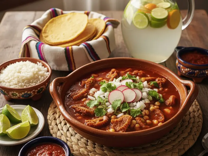Su aroma profundo, su textura suave y su caldo rojo brillante invitan a servirse un plato hondo, calientito, acompañado de tortillas recién hechas y limón fresco.