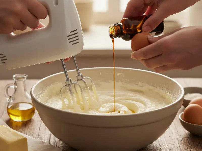 Incorpora la vainilla. Luego añade los huevos uno a uno, batiendo solo hasta que se integren.