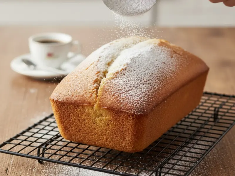 Solo espera a que el pan esté completamente frío, tamiza una capa ligera sobre la superficie y deja que caiga como una nevada suave.