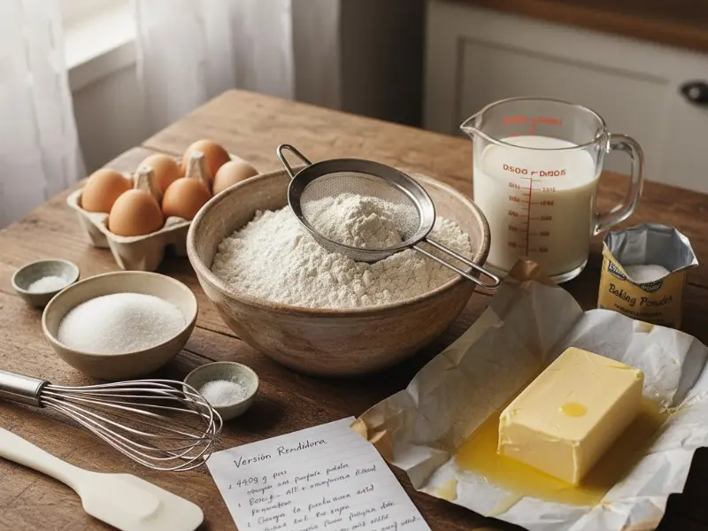 Este panqué se prepara con elementos básicos, fáciles de encontrar, y algunos sustitutos útiles si quieres experimentar.