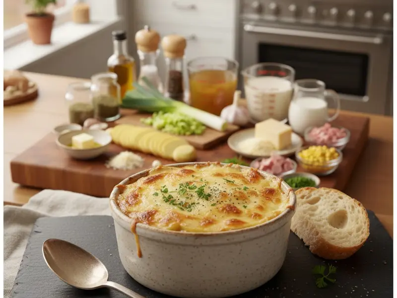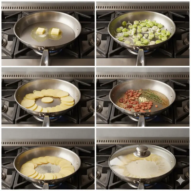 Iremos con calma para lograr papas tiernas, crema sedosa y un sabor profundo que abrace cada bocado.