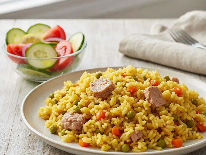 Aquí tienes un arroz con atún sencillo y rendidor, con pasos claros para que salga suelto y lleno de sabor.