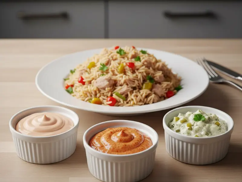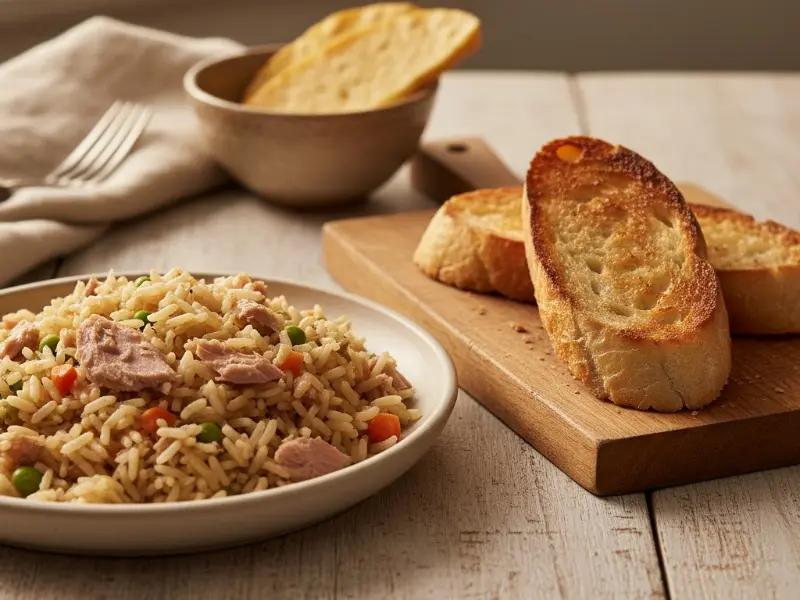 El arroz con atún puede servirse solo, pero si lo combinas con algo fresco o crujiente, el plato se transforma por completo.