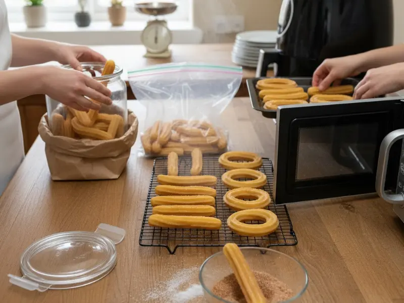 Conservar bien los churros marca la diferencia entre un bocado perfecto o uno reblandecido. Aquí el tiempo y el aire son clave.