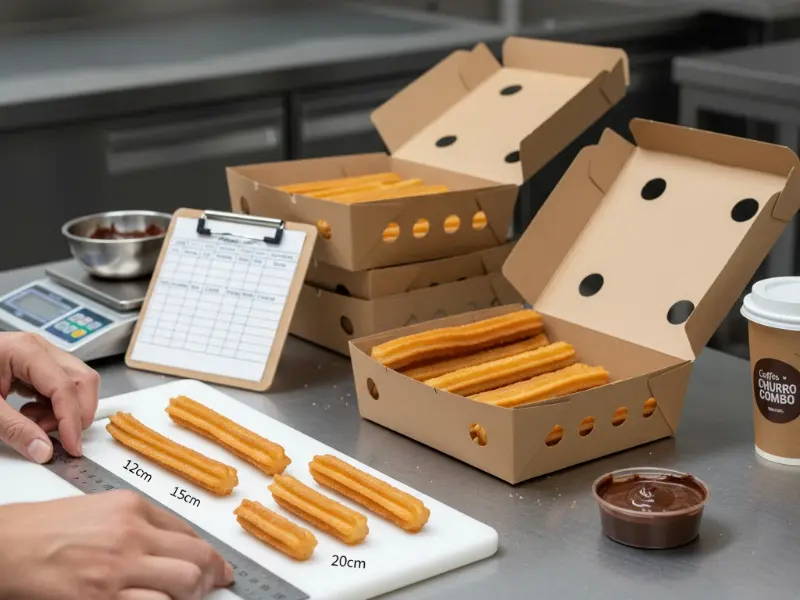 Porciona los churros por largo: 12, 15 o 20 cm. Usa una regla o plantilla para uniformar y mantener costos claros.