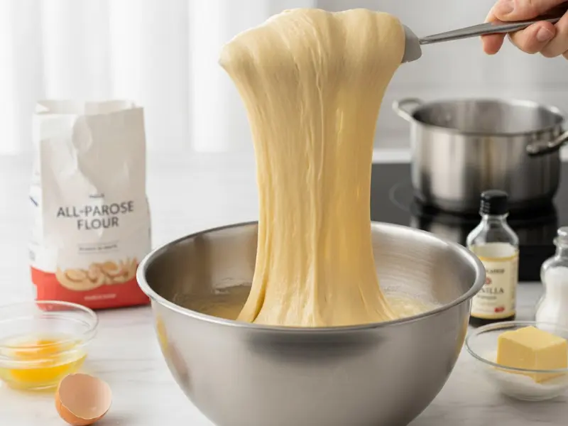 - Agrega el huevo en porciones, mezclando hasta obtener textura elástica.
