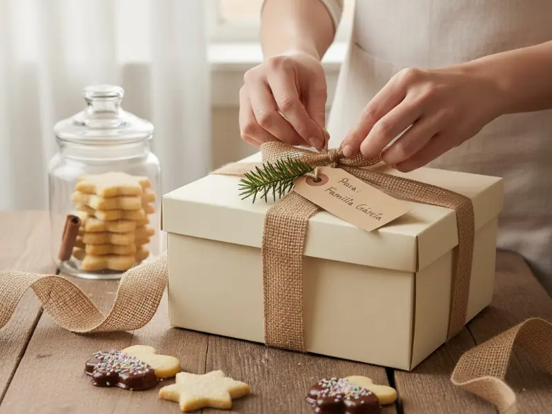 - Para un toque extra, incluye una ramita de canela, una estrella de anís o una pequeña hoja de pino dentro del empaque. Además de verse bien, perfumará el interior.