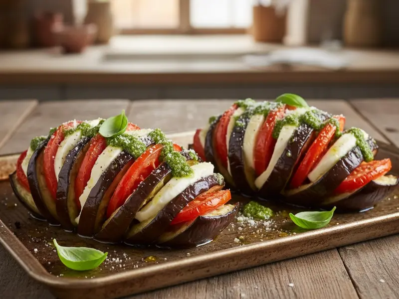 Berenjena “Hasselback” con tomate y mozzarella