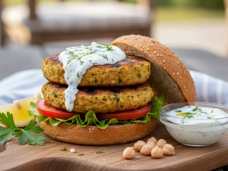 Hamburguesas de berenjena y garbanzo con salsa de yogur