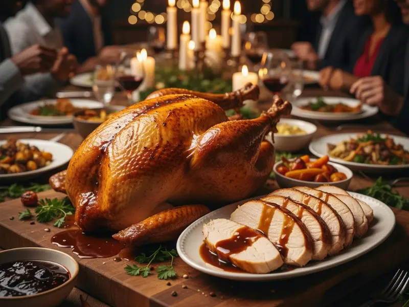 Si no quieres complicarte con un pavo entero, una pierna grande funciona igual y se rebana con facilidad para servir a muchos.