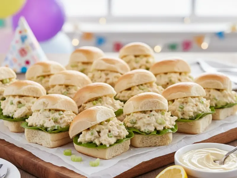 El clásico infalible de cualquier cumpleaños. Solo necesitas pollo desmenuzado, mayonesa, un toque de mostaza y unas gotas de limón.