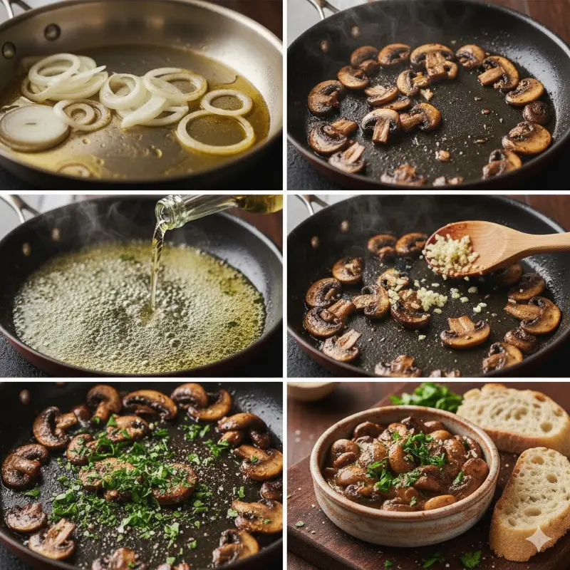 Salteado aromático y veloz. Los champiñones quedan jugosos con un brillo que invita a repetir.