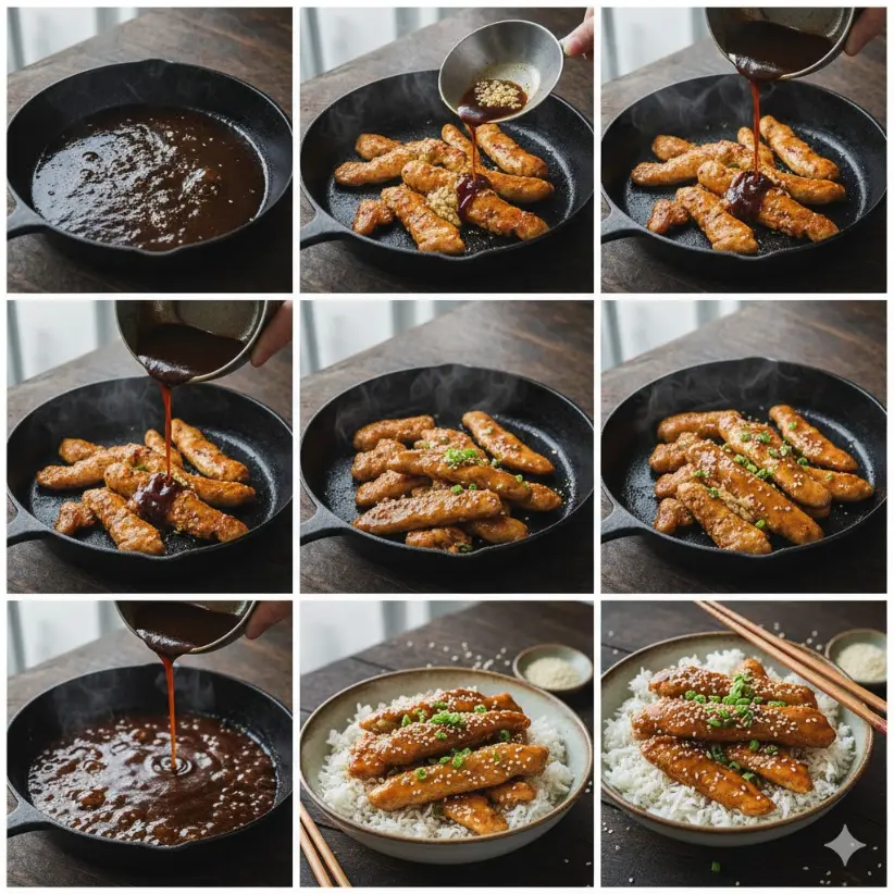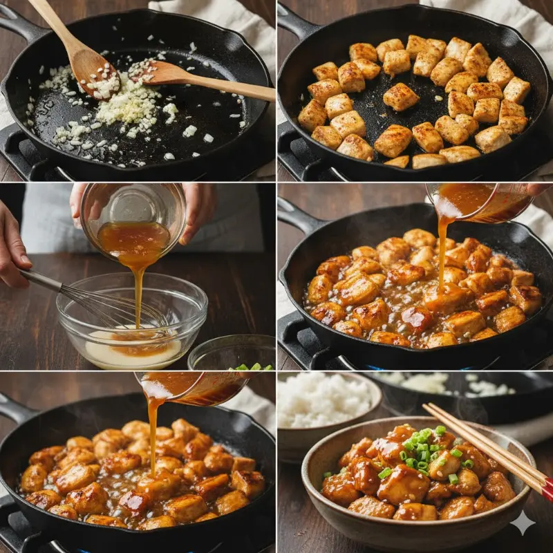 Sartén caliente, salsa lista y un salteado breve para conservar jugos.