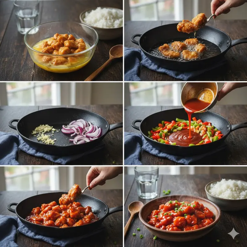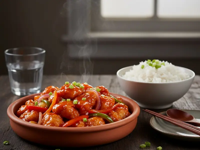 Crujiente al principio, luego tierno en salsa. Un contraste delicioso con sabor casero.