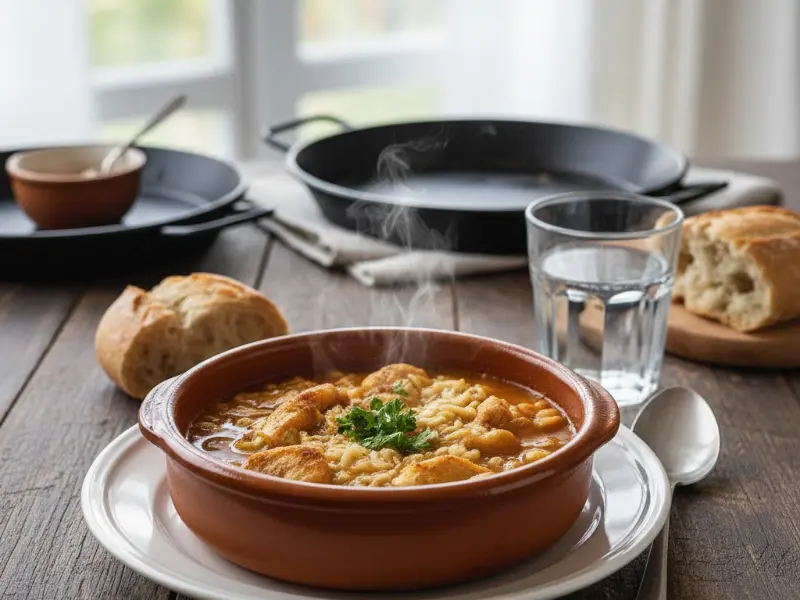 Sirve humeante: cucharón generoso y pan para limpiar el plato.