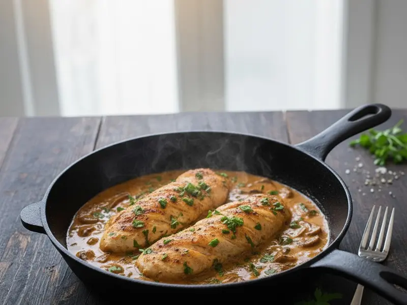 Pechugas trenzadas con salsa de champiñones