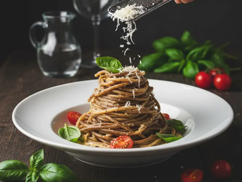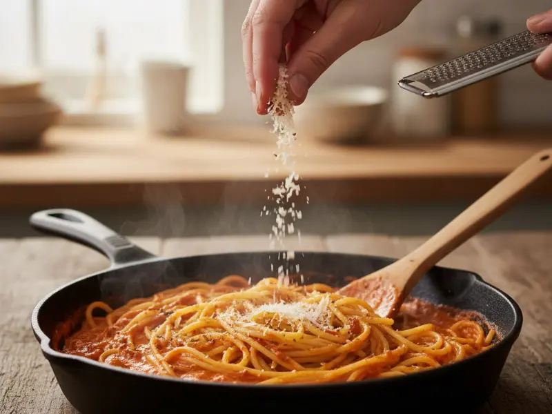 Ralla el queso justo antes de servir para que se funda suavemente sobre la pasta caliente.