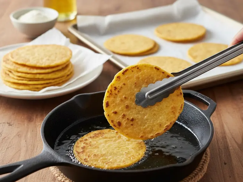 - Coloca una tortilla a la vez y fríela hasta que esté dorada, pero sin que se endurezca demasiado.